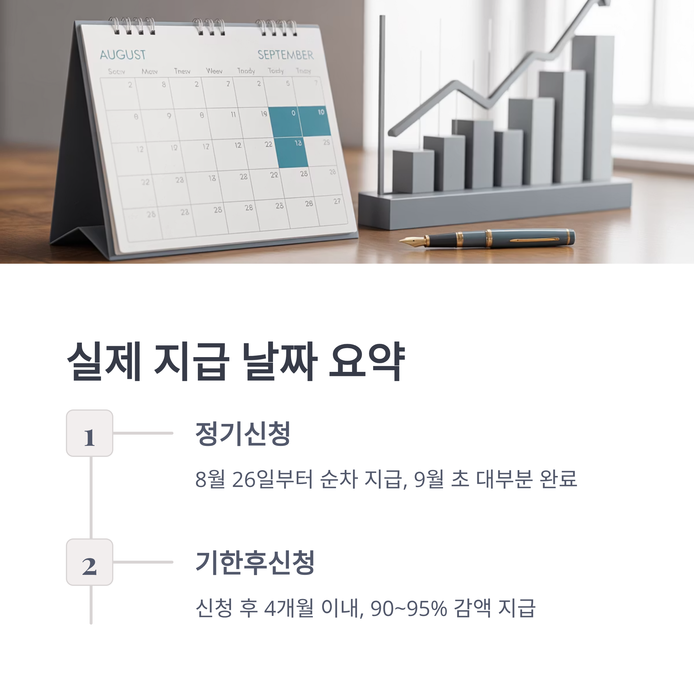 다만, 반기 신청자와 기한 후 신청자는 지급 시기가 달라지고 감액 적용이 있으니 반드시 본인 상황에 맞춰 신청 일정을 확인해야 합니다.