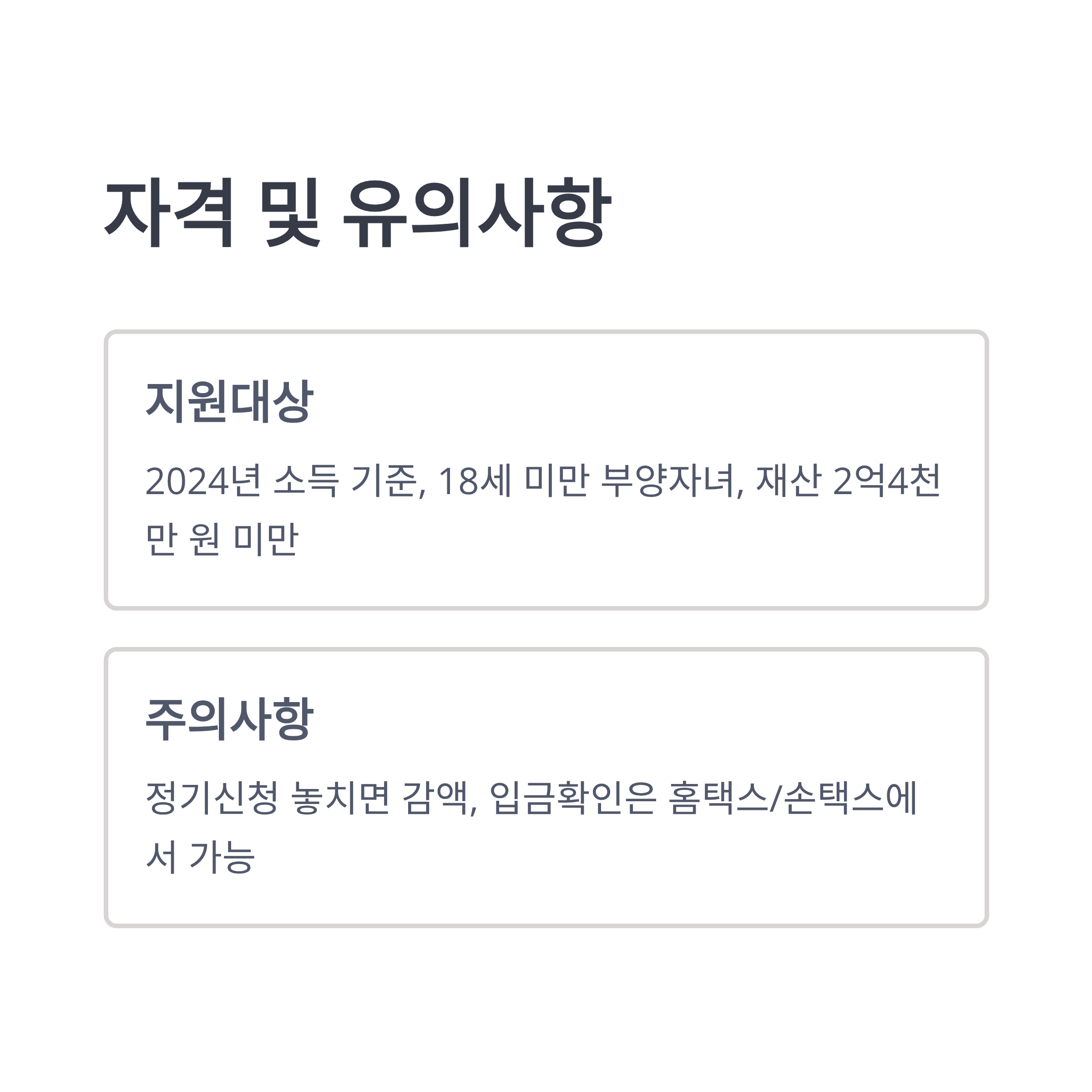 - 주의: 일부 자녀장려금은 연말 정산 시 확정·추가 반영될 수 있음