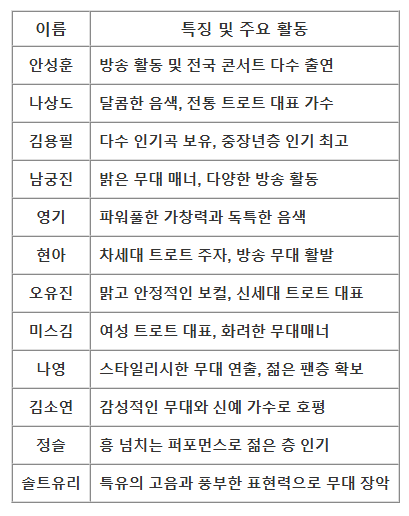 - 국내 최정상급 트로트 스타들이 총출동하는 대규모 콘서트