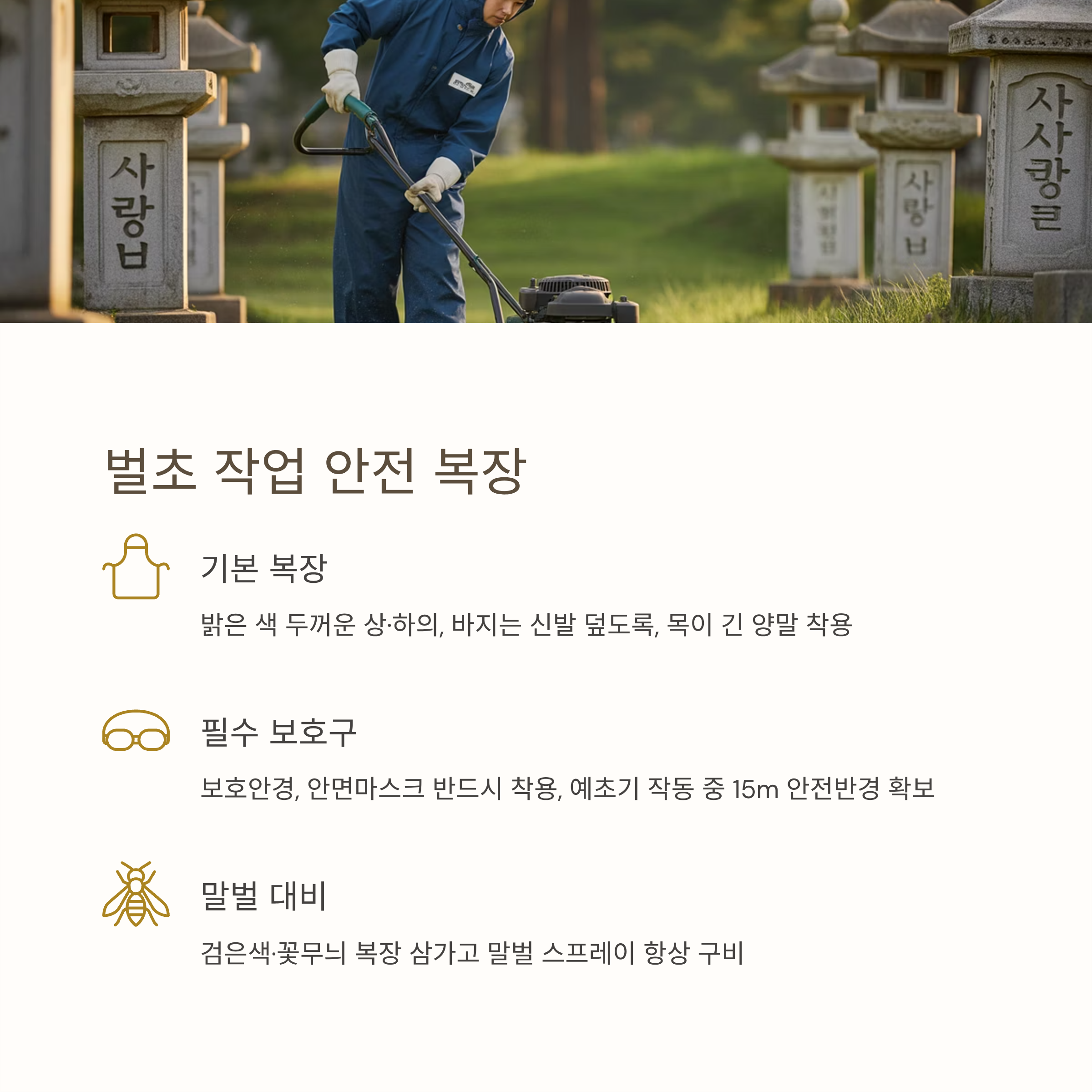 - 🚫 비석 주변 무리한 기계작업 → 낫·손톱 사용 권장