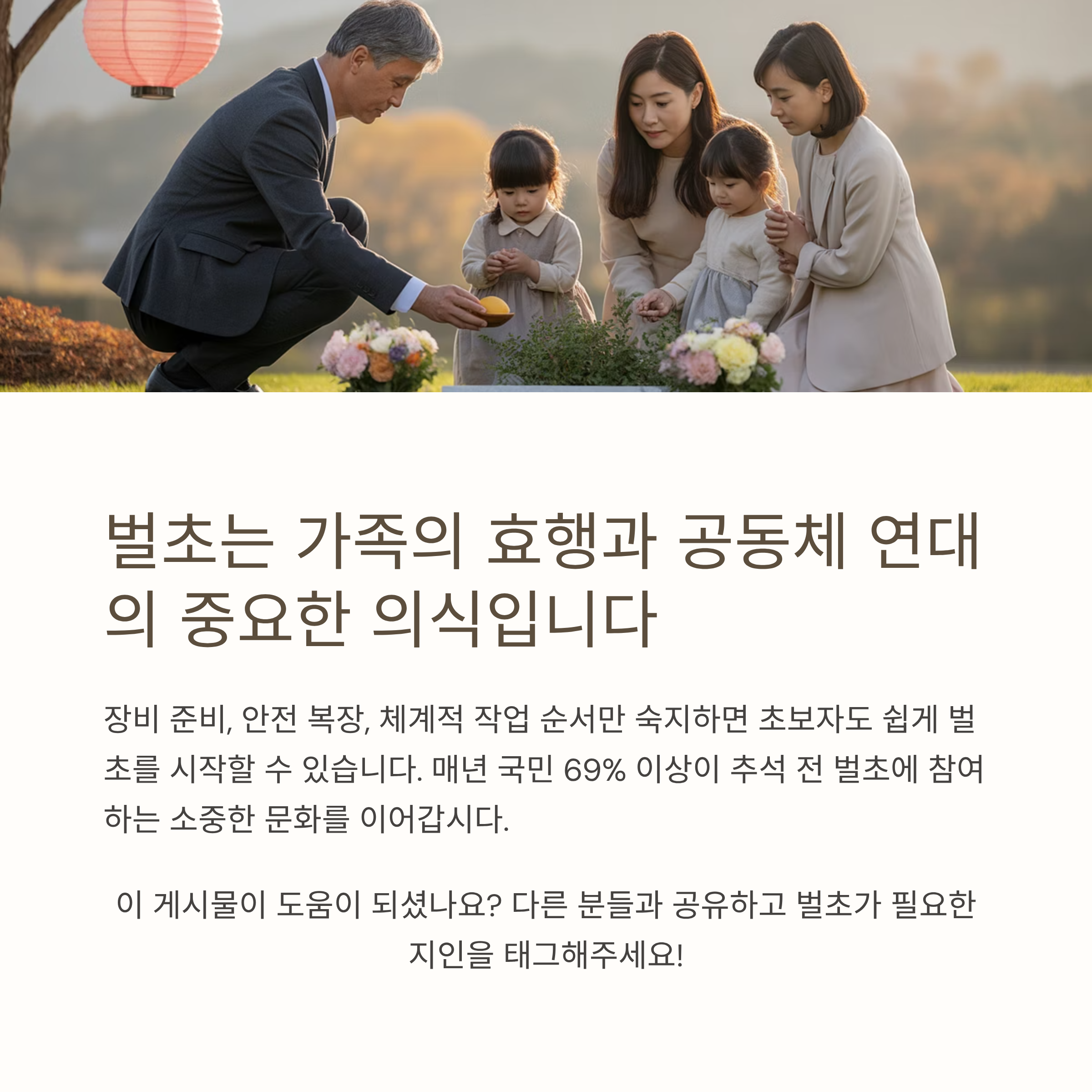 2025년 현재, 국민 69% 이상이 추석 전 벌초에 참여하는 만큼, 전통과 안전을 함께 지켜 나가는 지혜가 필요합니다.