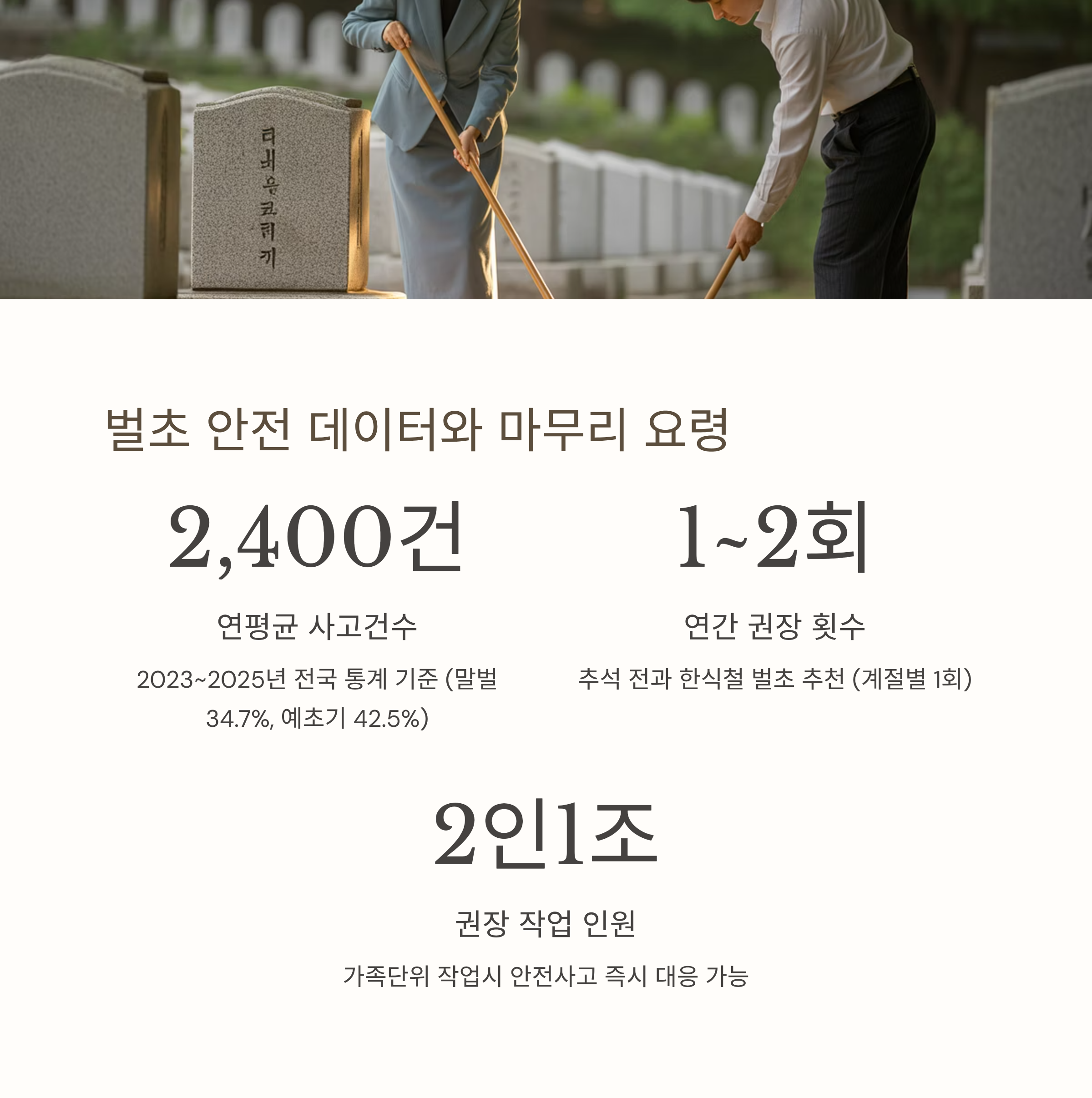 - 연간 벌초 횟수: 평균 1~2회 (추석 전, 한식철)