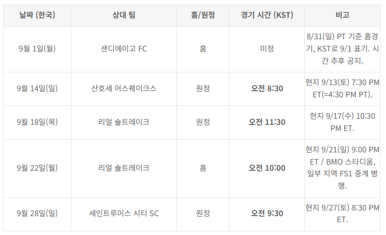 손흥민의 MLS 9월 일정은 홈과 원정 경기를 오가며 치열하게 이어집니다.