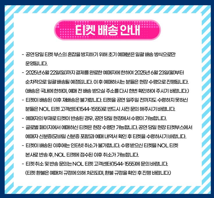 ※ 공연 당일 티켓 미소지 시 입장 불가하므로 반드시 보관에 유의해 주세요!