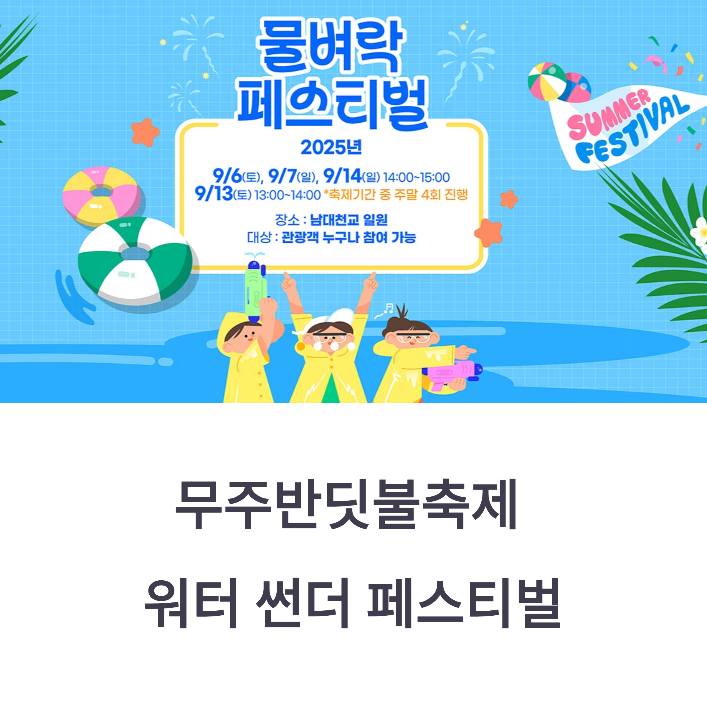 - 현장 제공: 선착순 100명에게 무료 물총·일회용 우비 지급