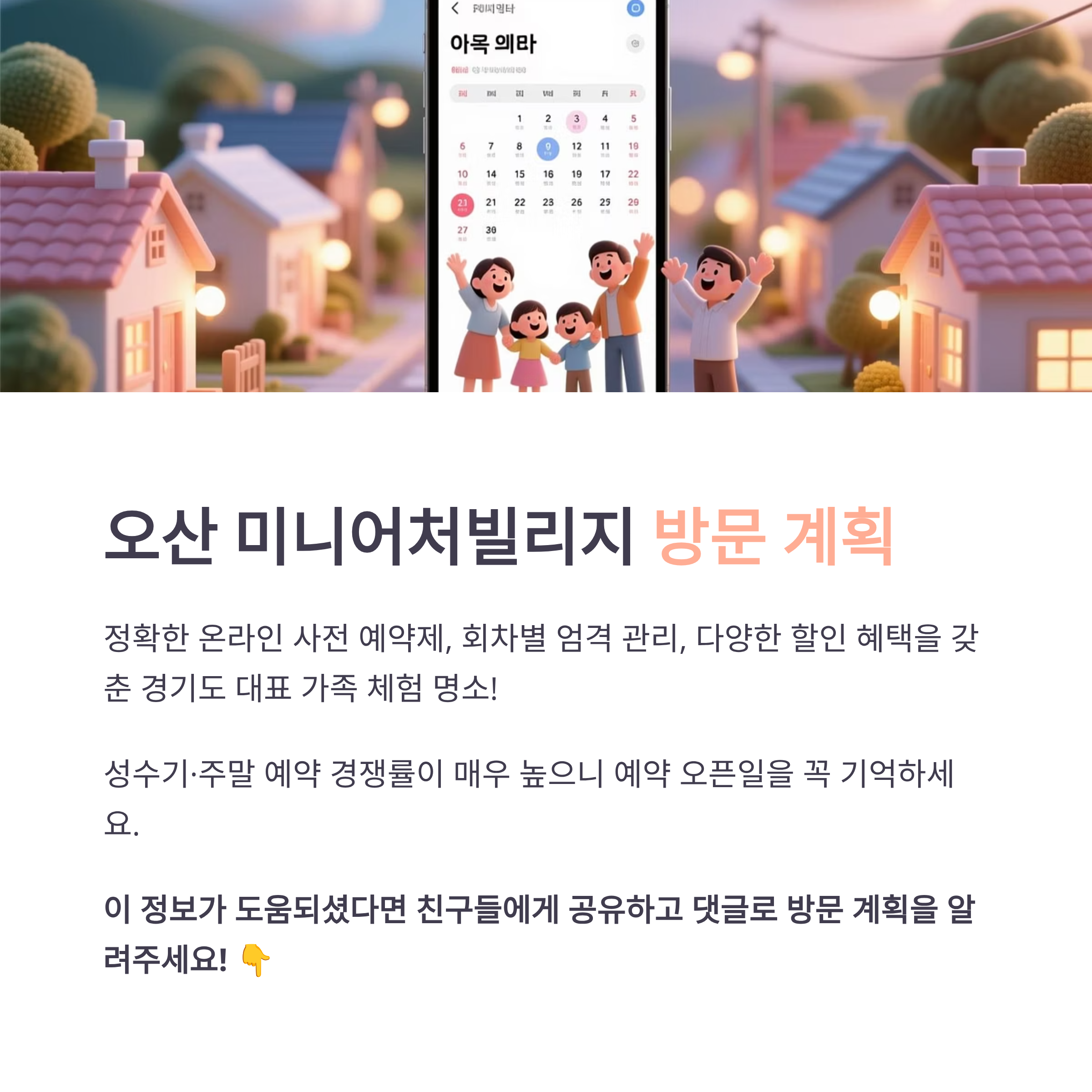 - 공식 홈페이지 예약: 오산시 공식 홈페이지(osan.go.kr/miniature)에서 가능