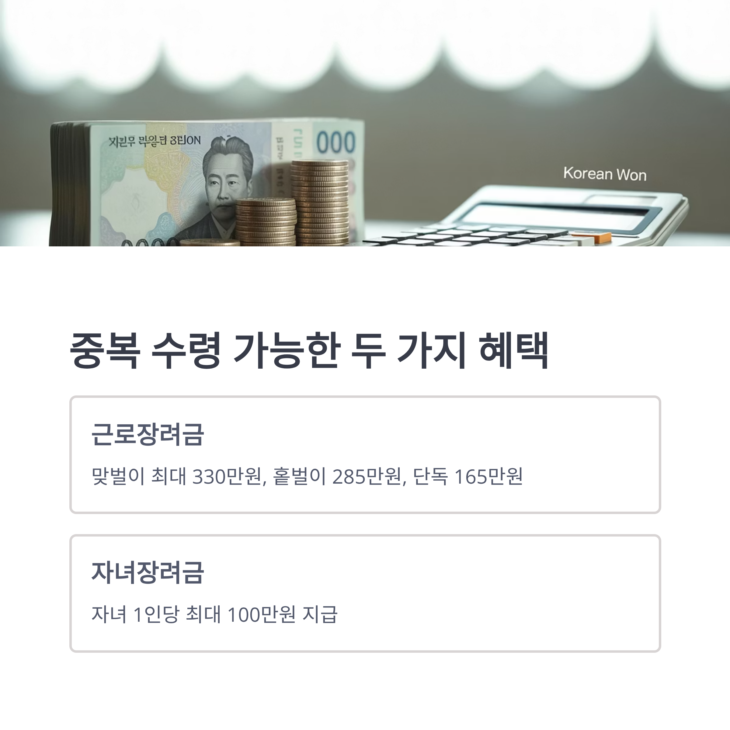 2025년 근로장려금과 자녀장려금은 별개의 제도이지만, 요건을 충족하면 중복 수급 가능합니다.