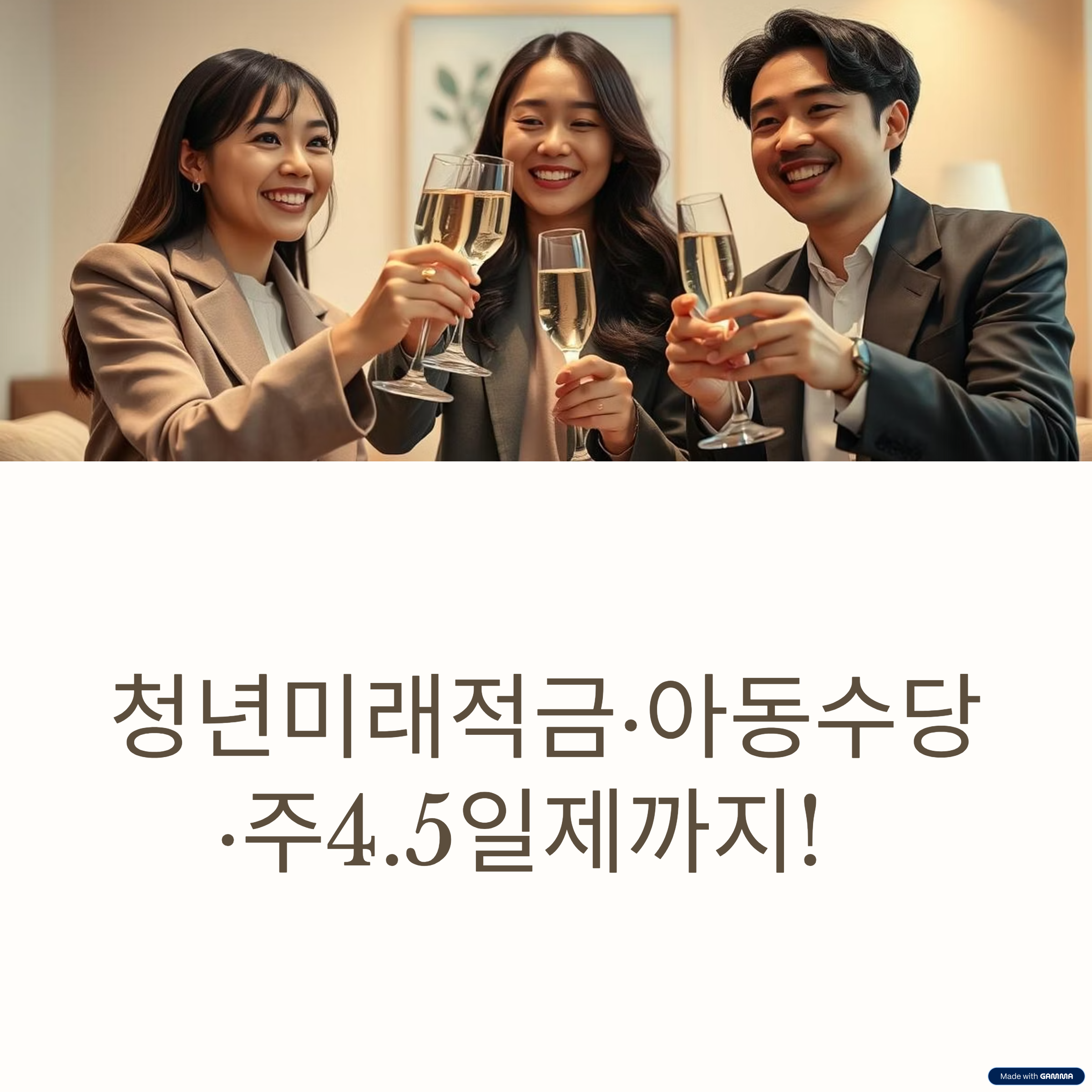- 워라밸+4.5 프로젝트: 주 4.5일제 도입 기업에 월 20만~50만 원 지원