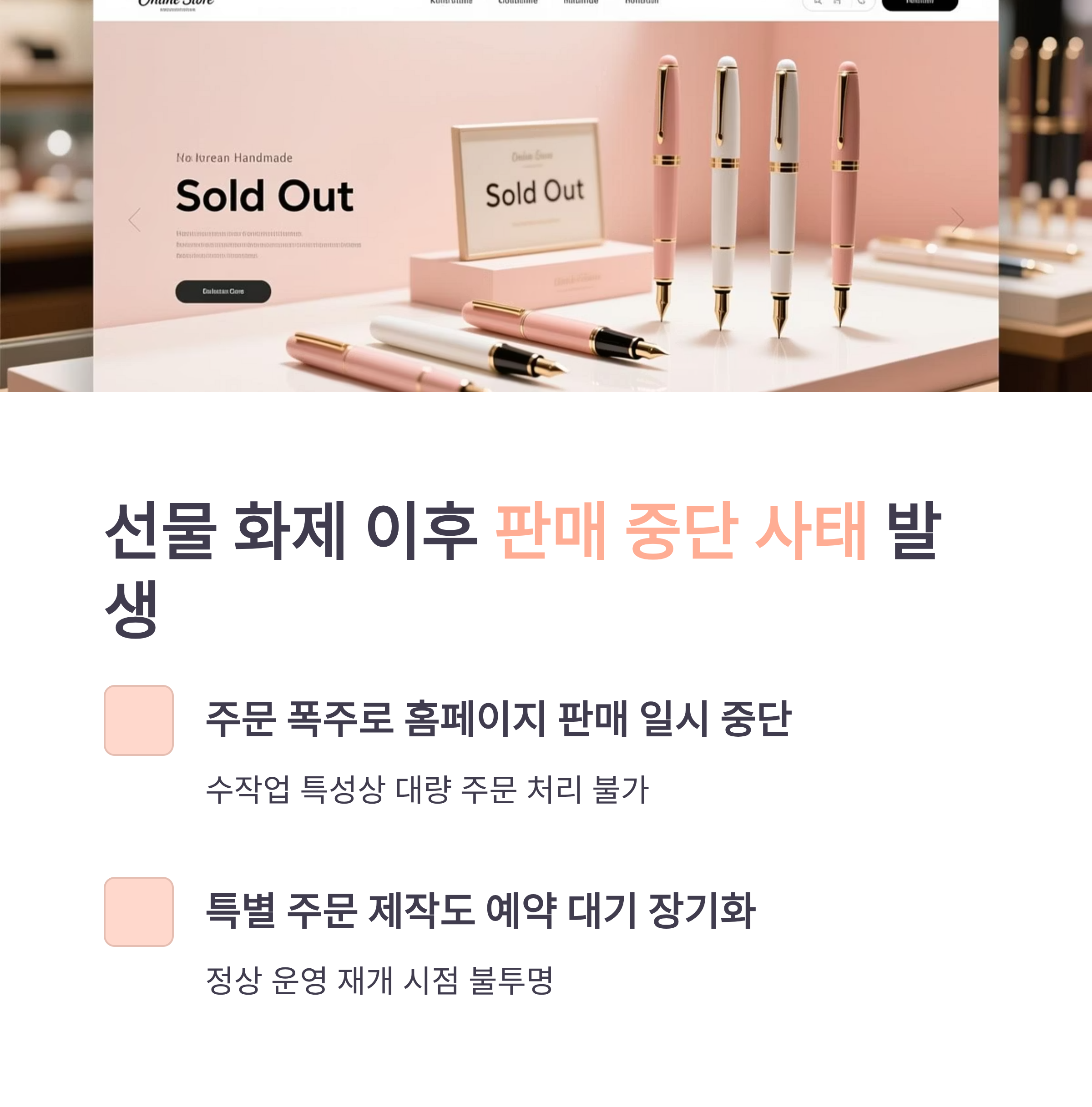 - 공방 특성상 대량 생산 불가 → 주문 대기 기간 장기화