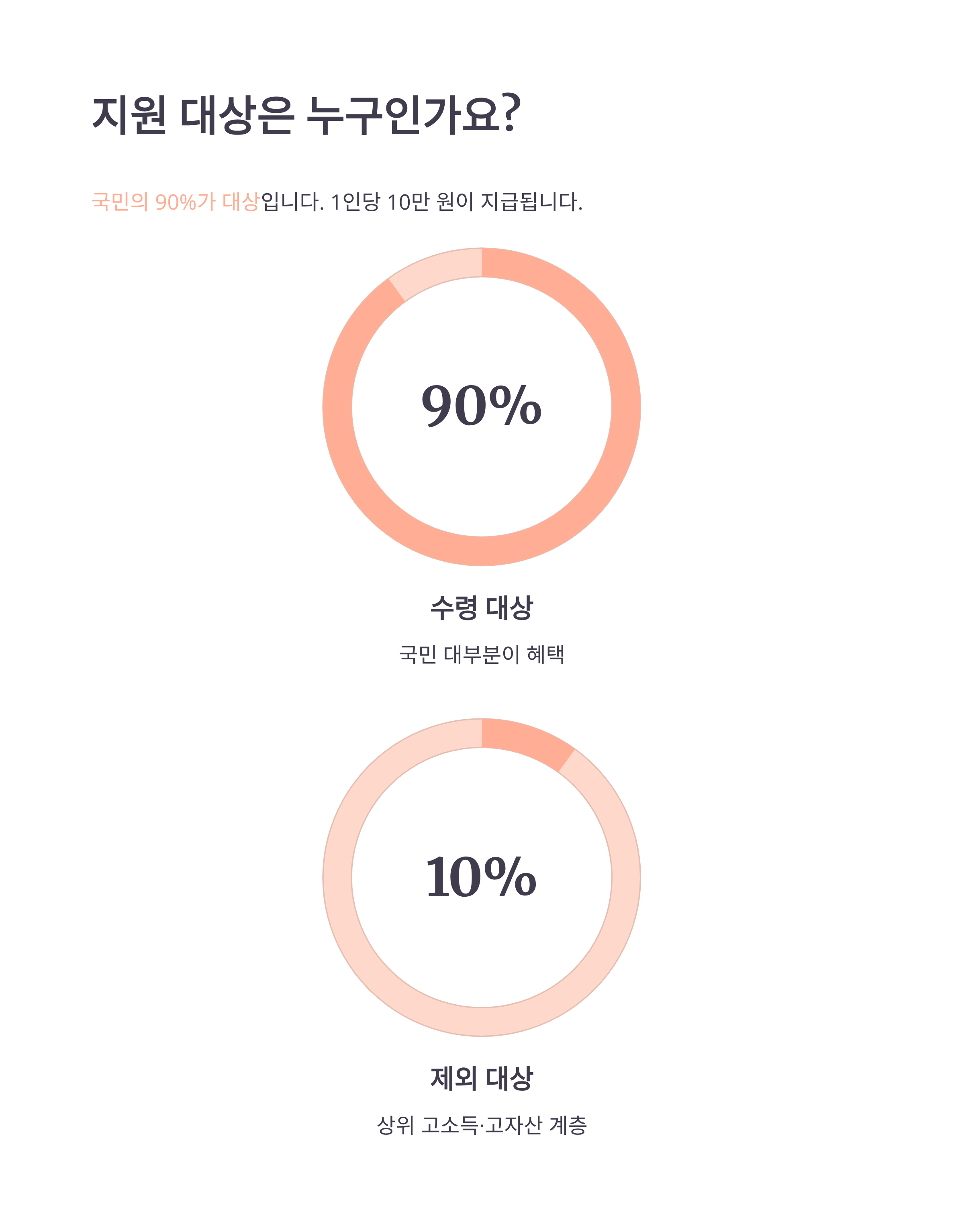 이번 지원금은 1인당 10만 원이 지급되며, 90% 국민이 수령 대상입니다. 상위 10% 고소득·고자산 계층은 제외됩니다.