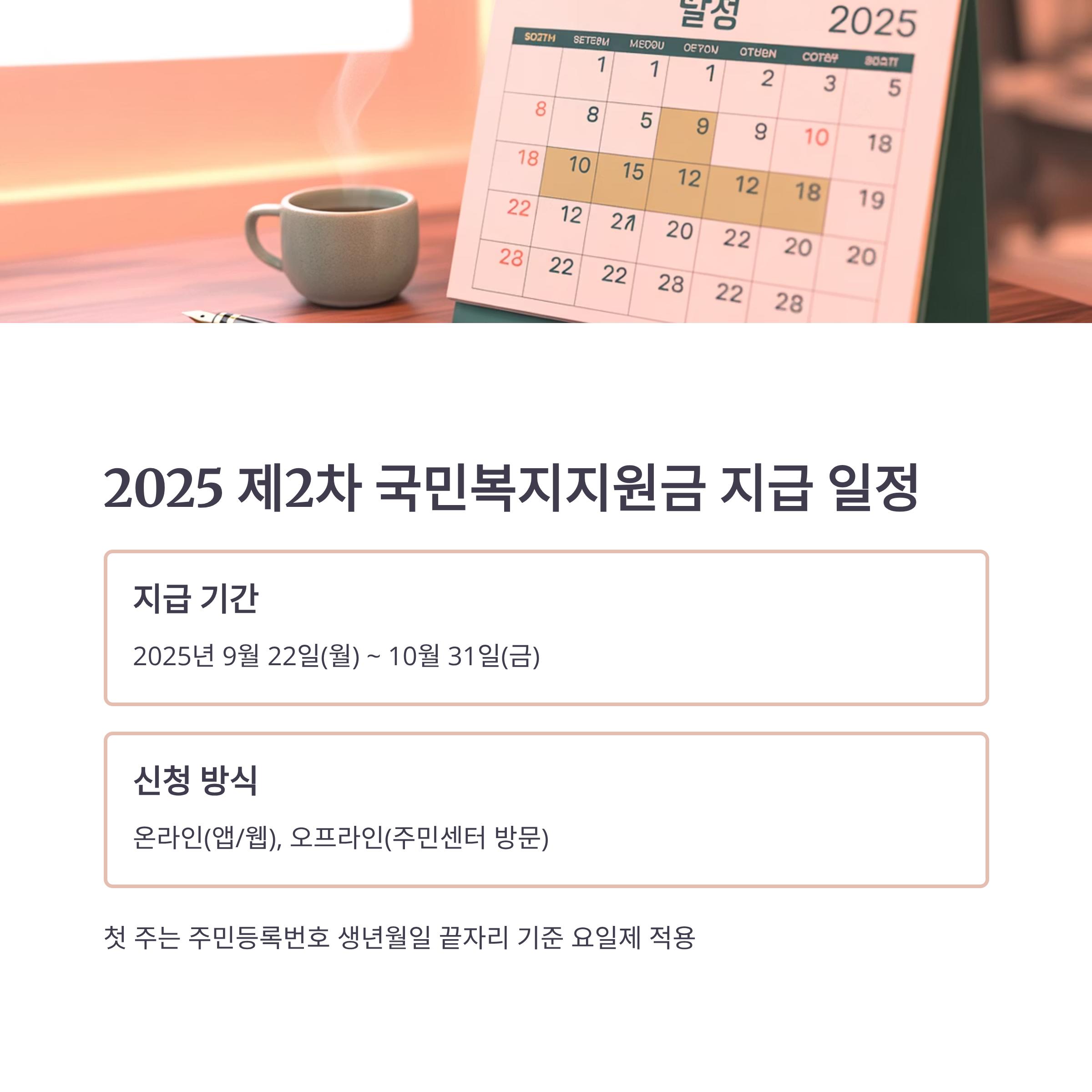 2025년 제2차 국민복지지원금이 9월 22일부터 10월 31일까지 지급됩니다.